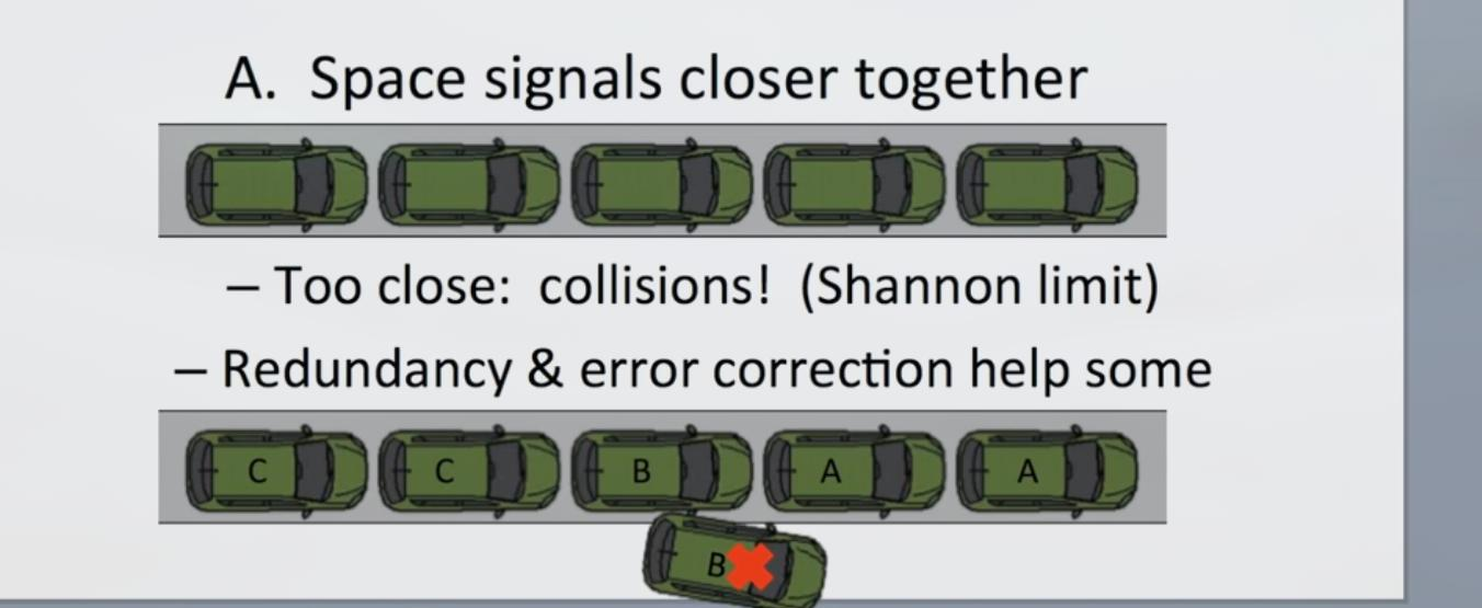 Sinyalleri Sıklaştırmak: Veriyi daha sık göndermek. Bu durum, sinyallerin birbirine karışma riskini (çarpışma) artırır ve bunun da bir limiti vardır (Shannon Limiti).